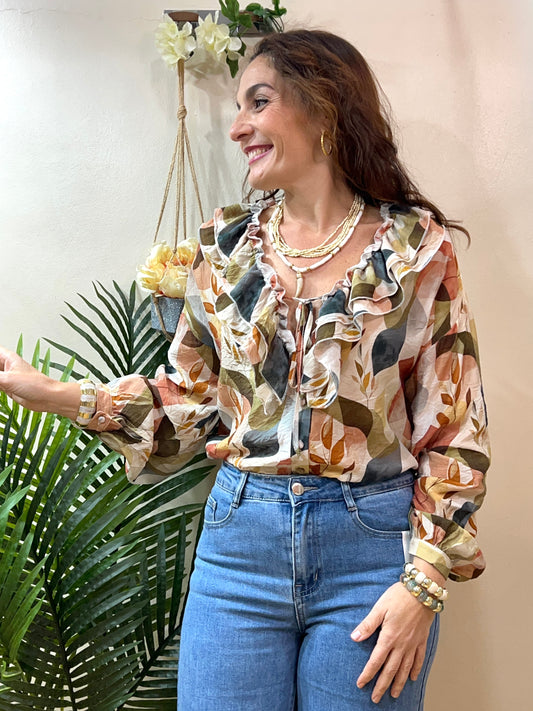Blusa escote volantes