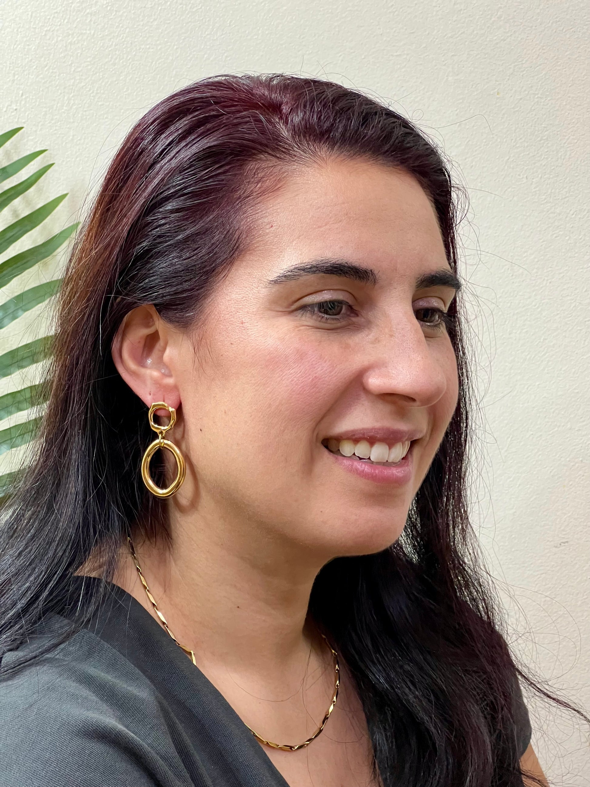 Pendientes en acero con doble aro unidos por eslabón, con movimiento. Acero hipoalergénico y quirúrgico. Resistente al agua y al sudor. Largo total 4,5 cm. Cierre de tornillo.