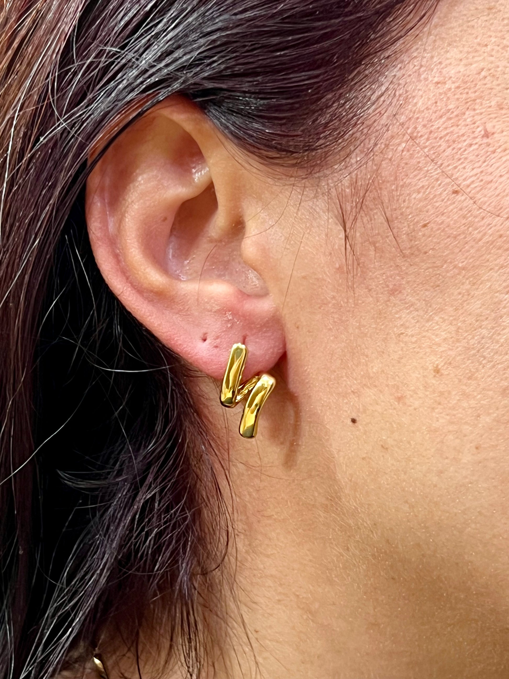 Pendientes de acero inoxidable en forma de Z mediana. Acero quirúrgico e hipoalergénico, resistente al agua y al sudor. Largo 2 cm. Cierre de tornillo.