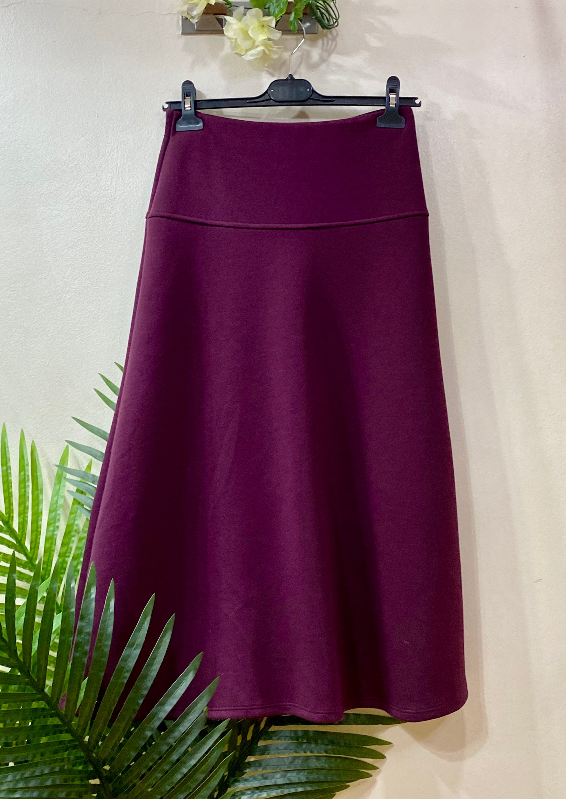 Falda de punto elástico de calidad. Cinturilla engomada y corte midi. Talla única (perfecto para tallas 36, 38, 40 y 42). Composición: 95% poliester y 5% elastano.